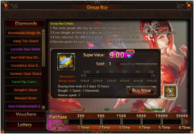 1. Group Buy points are rewarded to players every time they make a successful purchase. These points can be used in the lottery.