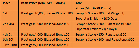 At the end of the event, the top 20 players with at least 3500 overall points have a chance to win Perfect Philosopher's Stone, Celestial Origin Crystal and Mythic Origin Crystal.