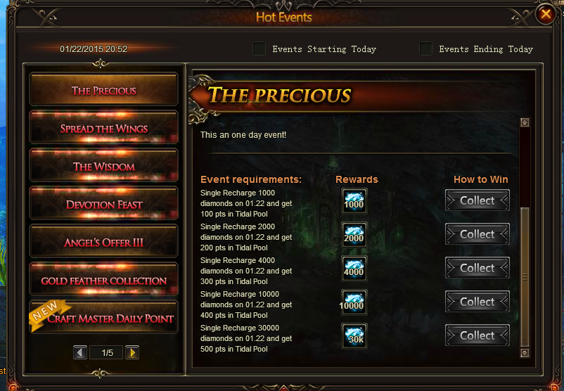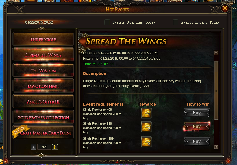 as you can see in my "Spread the Wings" event i have unlocked the single recharge of 999but i wont buy it yet becuase i was hoping to buy it with my dia reward from the precious event..