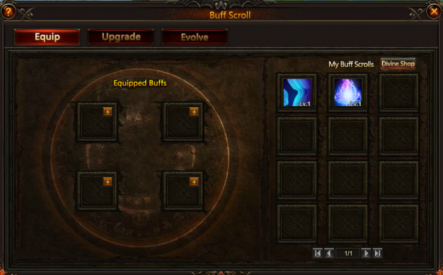 4. Buff Scrolls: Buff Scrolls can be used in a battleground. Click on Buff Scrolls and trigger them on a target within the effect range. Each Buff Scroll has it’s own special effects.