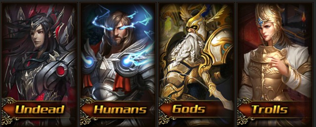 In each battleground there are 4 factions: Gods, Humans, Trolls, and the Undead. Each of these represents a different element and guardian as shown below.