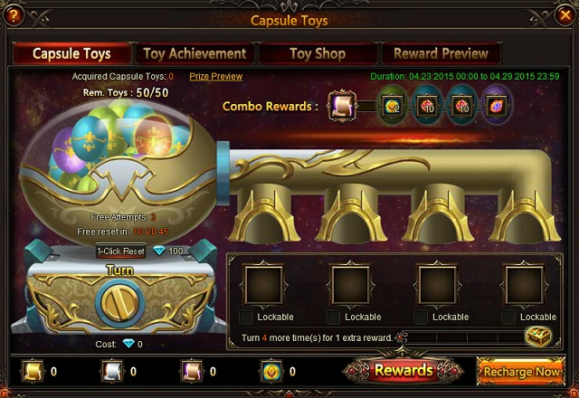 4. Capsule prizes are shown in the panel while actual rewards will be placed in the reward inventory. Lock prizes for a fee to create combos.