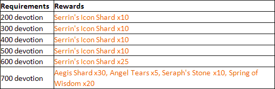Description: Reach a certain amount of devotion every day to collect Serrin's Icon Shard !
