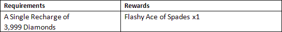 Description: Spend certain amounts of Diamonds to get extra rewards like King of Spades, Ace of Spades, Awakening Stones, Hero's Mark, and Joker (S).