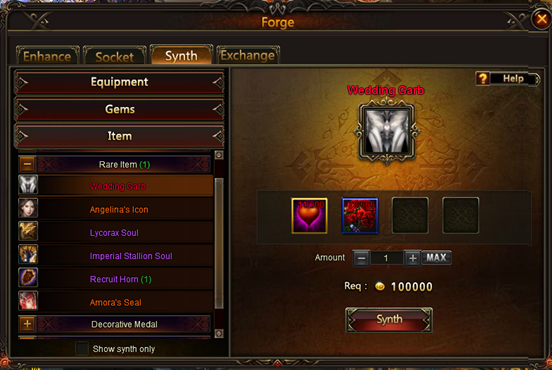 Head to the Forge and navigate to the Synth tab, where you’ll be able to synth your own Wedding Dress.