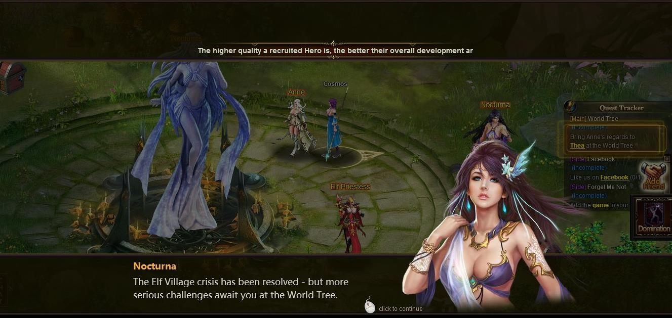 Level 24: Recruit Heroes Feature. This is one of the most imporant features, it opens the tavern interface, which is where you can recruit new heroes for your party. There are 3 tavern tiers. Visit our Heroes guide for more information on recruiting new heroes. Only the first, Tier 1 tavern is opened by default. Gather enough herosouls of the appropiate color and click Recruit for the hero you want. Finally, click to cut to herosouls interface.