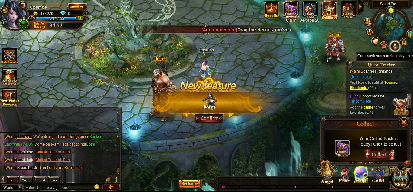 Level 22: World Boss Feature. get access to the World Boss daily event, this event is opened at 19:00. Your goal is to do as much damage as possible to the three bosses available. The rewards you obtain in the end depends on the amount of damage dealt.