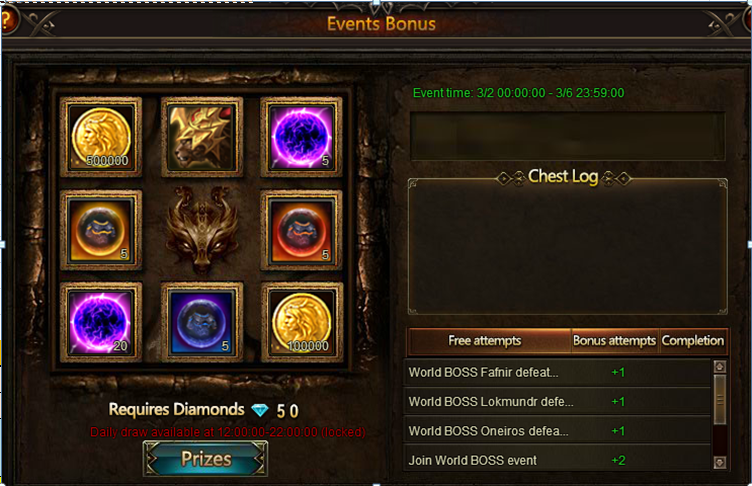 - Any player who participates in the World Boss event will receive 2 prize draws.