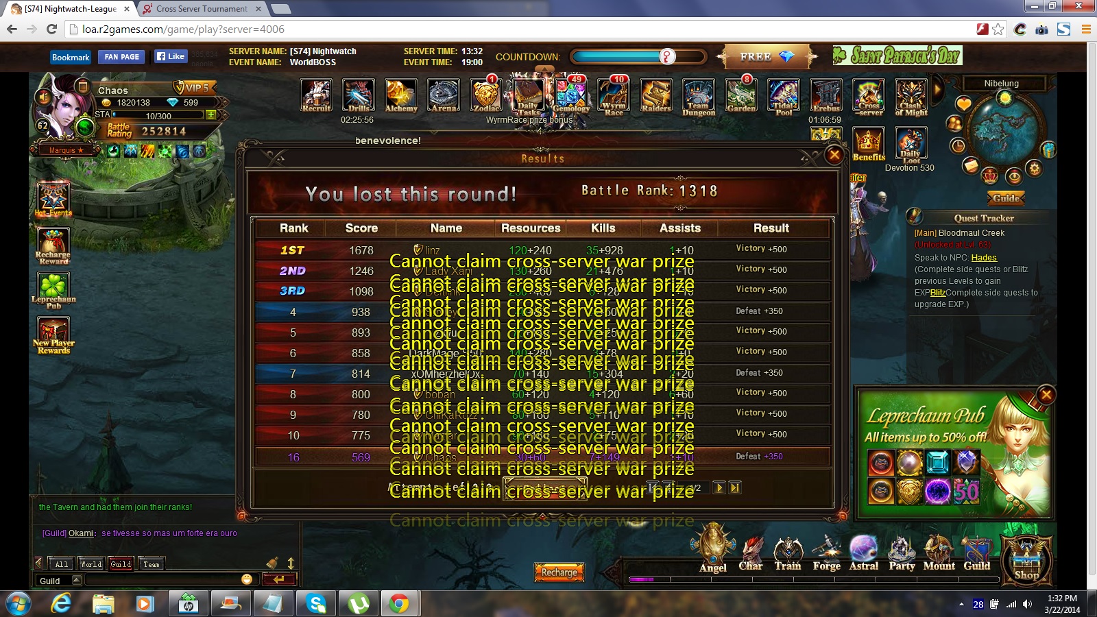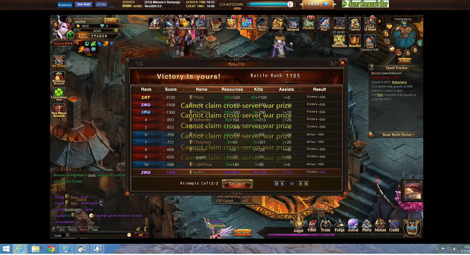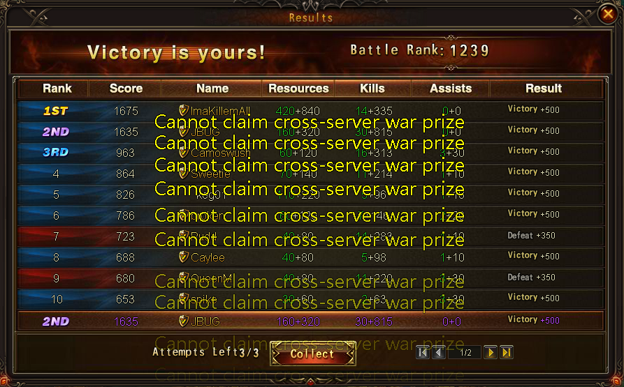 Due to cross server battle issue caused by the update, the us east Cross Server access has been unavailable for several hours, and s106 can't login. The issue has been addressed. We apologize for any inconvenience this has caused you and we will be providing a compensation pack. Hope to see you all back in game!