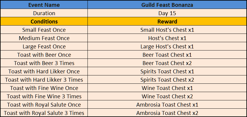 Description: Host or attend a Guild Feast every day and earn extra rewards!