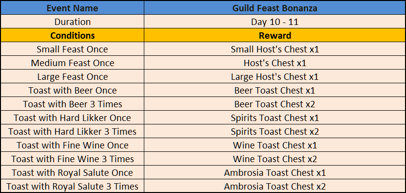 Description: Host or attend a Guild Feast every day and earn extra rewards!