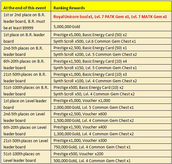Description: If you reach Lvl. 45, have at least 50000 B.R., and are ranked 50th or higher on the B.R. leader boards, as of the end of this event, you can collect awesome rewards and special titles over the next day. Only the strongest survive, do you have what it takes?