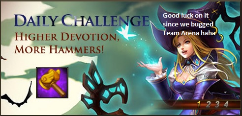 agree ! we are barely to get 30pts each day, and since we just can get the hammer just from devotion point,,, we just can get max 11 hammer and i believe we cant get 600 devotion everyday because lv60++ can not leveling up everyday. and to get 700pts,,, its too expensive. so, please make some events more relevant next time, that still make sense and easier to achieve_able.Originally posted by Trev451 View PostHonestly im a diamond user and really u guys are getting worse.