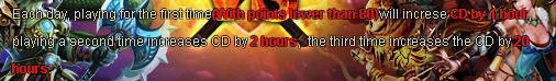 also you should check it better. cd increased for x hours only if you get less than 80pts. if you get more than 80 here should be no cd.Originally posted by DarkCore24 View PostThere's a rule that says each time you play, your CD will be increased for x hours... Just check CS Rules better
