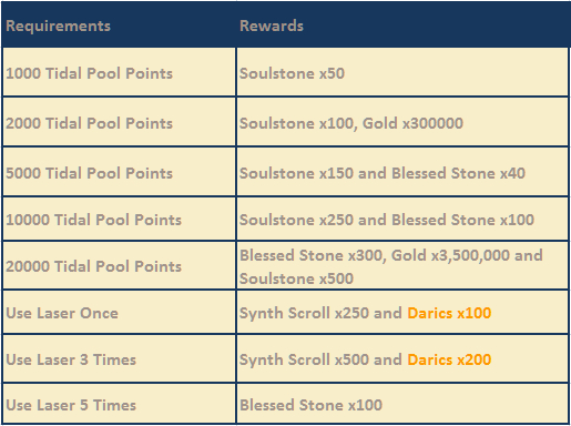 Description: Play Tidal Pool every day to win extra Soulstones, Blessed Stones and many other rare items!