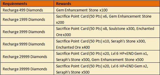 Description: During the event, players who cumulatively recharge certain amounts of Diamonds can get special rewards in the Recharge Reward panel.