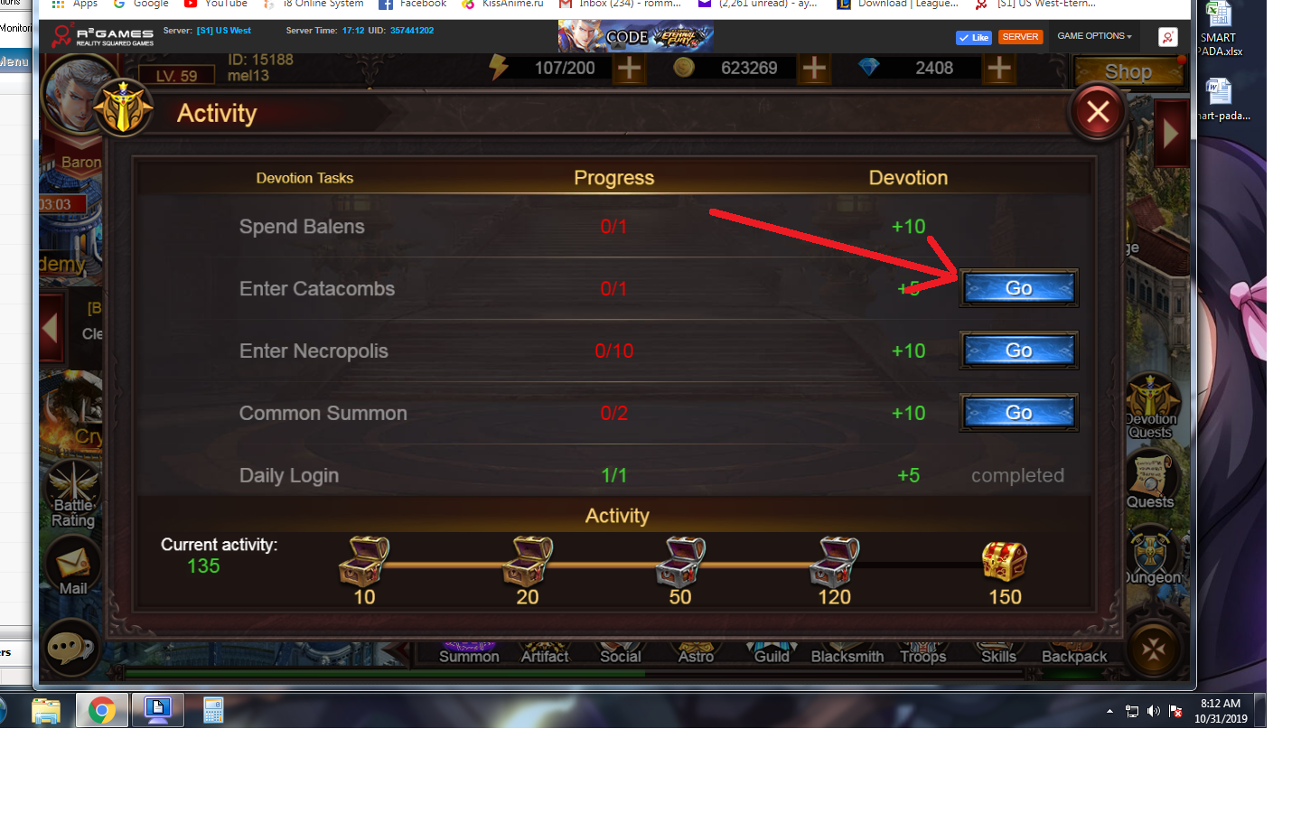 if you click "claim stamina" it will also sent you into catacombs and give you no credit lmaoIf you have a problem, need assistance and we can't help? Submit a ticket with R2 here