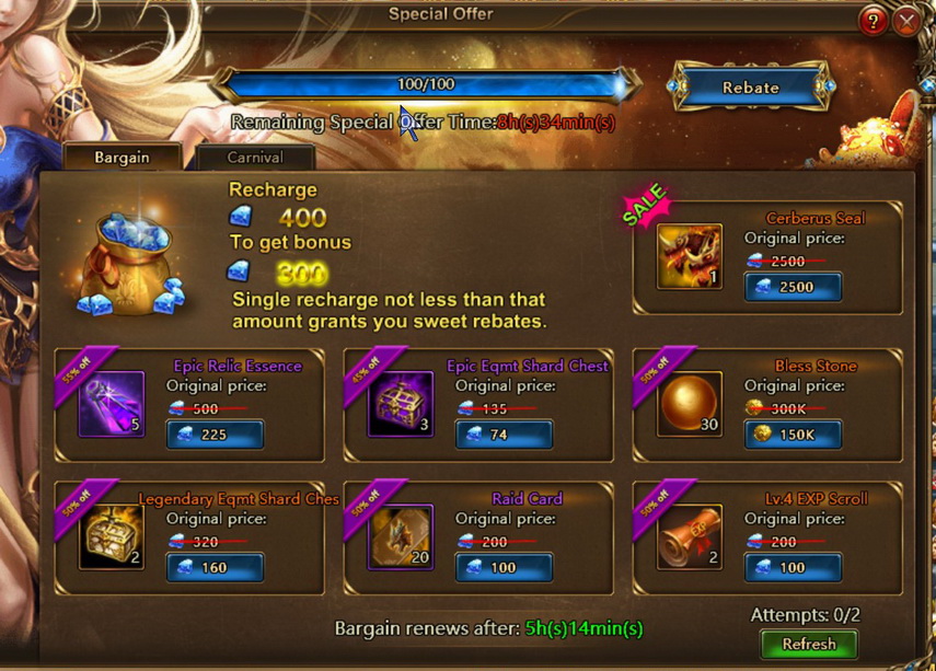 The price for the Cerberus seal in the special offer tab is correct. There is no discount on this mount/item since it is of course, an item that allows you to unlock a new mount.Last edited by KanaDT; 01-16-2017, 10:06 PM.If your question wasn't answered, and you are still needing assistance, send a ticket