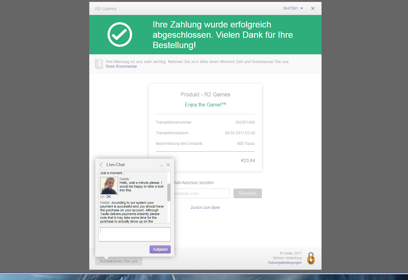 Bought 800 Topaz succes, 30+ min ago, still not delivered. Event single recharge time left 1h 30 min. Usually time deliver it's 0-2 minutes.