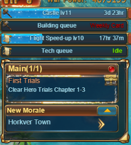 2. Reward tab for merit rewards is missing and Extension tab is missing. Also the Main tab seems broken since I do not see the tab/icon when you upgrade buildings in the Fief. Please see image below.