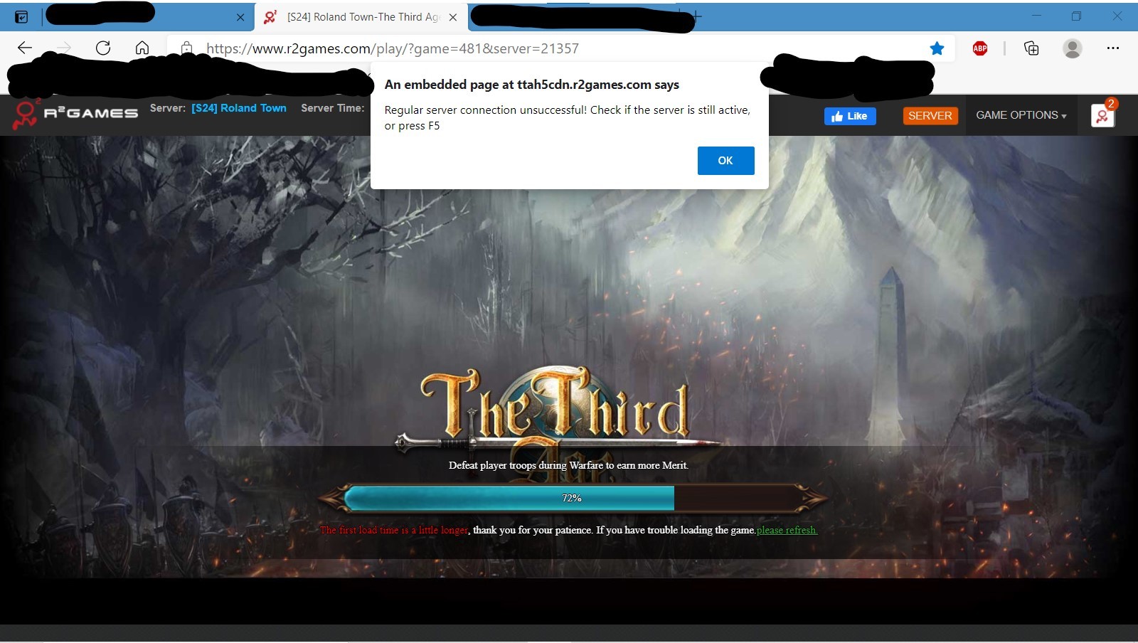 Everything was fine. Suddenly kicked out and cannot get back on. This always happens just before sieges - wonderful. See screenshot