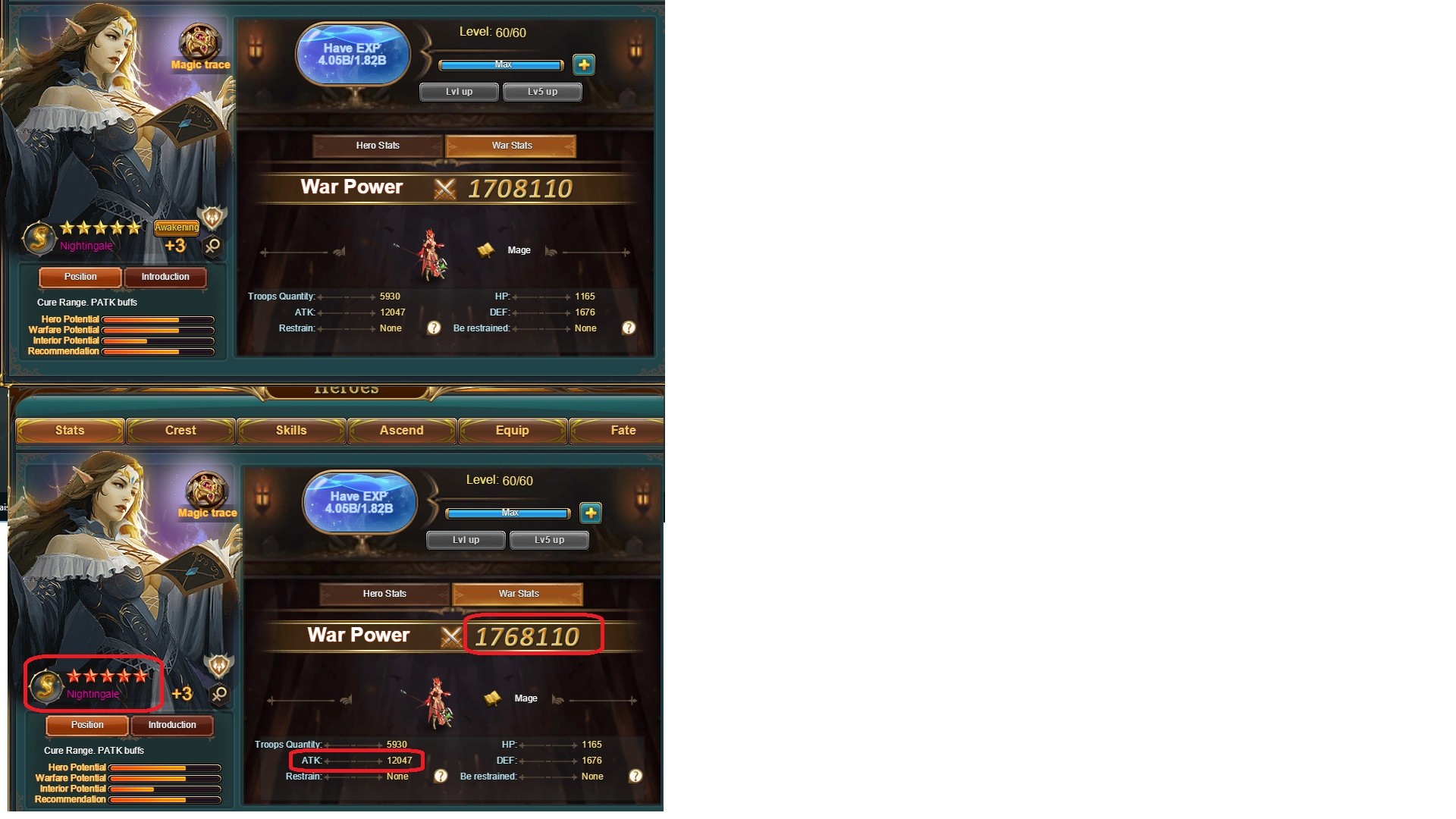 Heroe Hit Points or troop attack did not improve after awakening. Only heroe power increased. Game reloading did nothing.