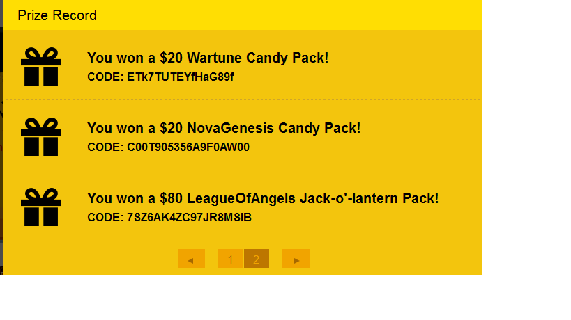You won a $20 LeagueOfAngels Candy Pack!CODE: EGOB8TR5O0A8SZW76M
