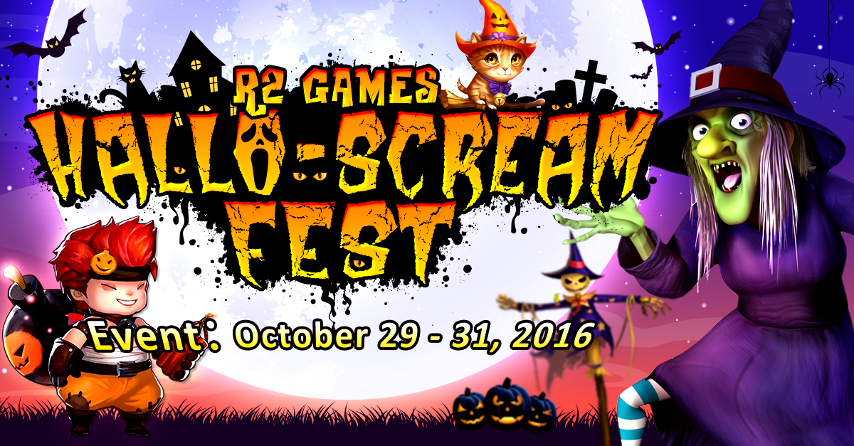 Halloween is upon us - This year, R2Games invites you to the 2016 Hallo-Scream Fest! Take part in fun themed mini-games to earn fantastic rewards! Seasonal frights and spooky delights await!