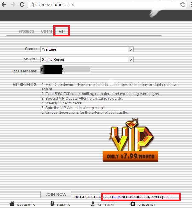 for those who don't know how to avail VIP without credit card visit store.r2games.com click the VIP tab then look for alternative options in the lower part of the page.Server: S250 - Willow Brook